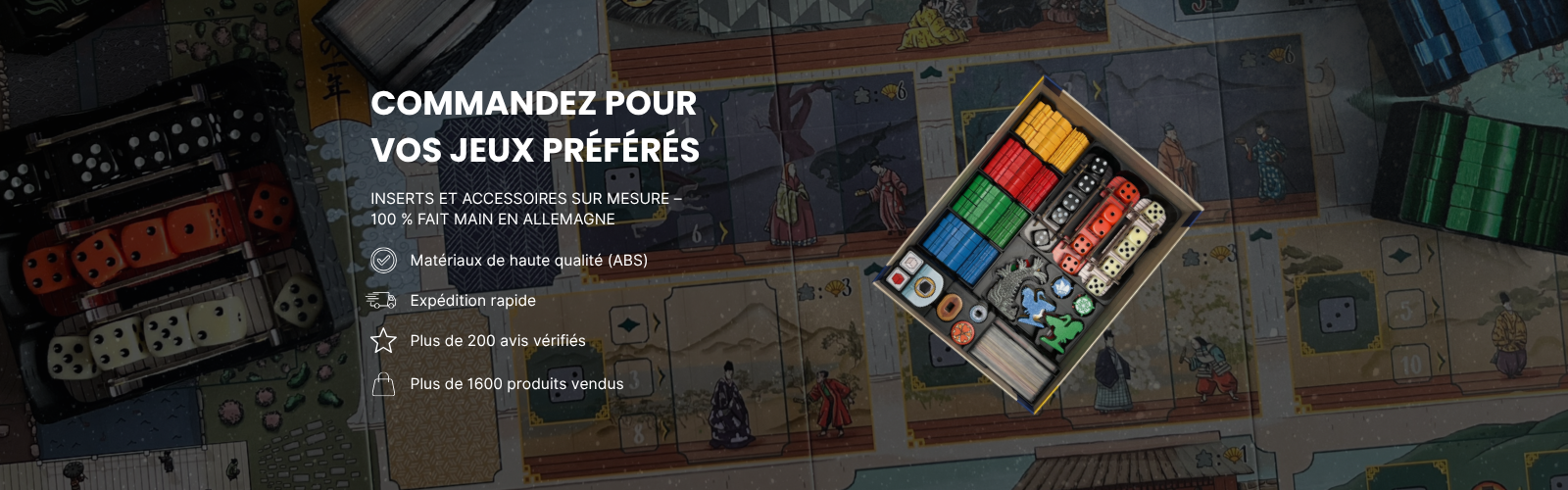 Inserts imprimés en 3D sur mesure pour jeux de société.