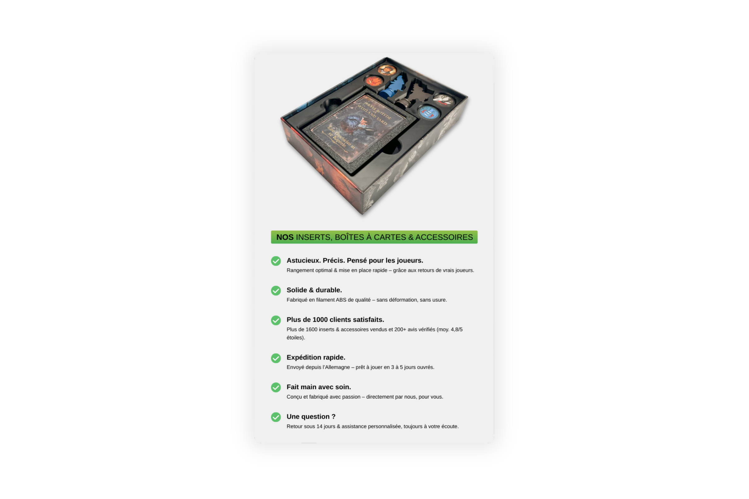 INSERTS, BOÎTES À CARTES, ACCESSOIRES ET BIEN PLUS...
