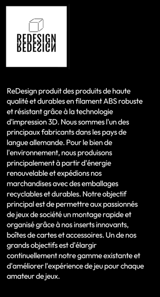 - L'insert a été imprimé à partir de filament ABS de haute qualité et avec des graphismes élaborés. Cet insert assure l'ordre souhaité sur la table de jeu et dans la boîte de jeu de société.
